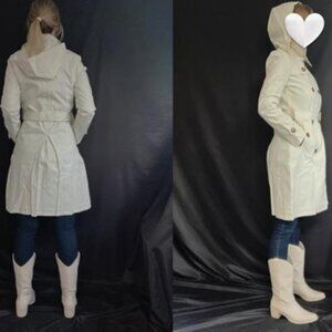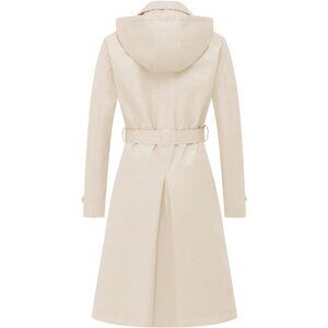 Women's Double Breasted Long Trench Coats Mid-Length Belted with Detachable Hood