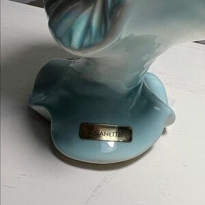 Charming vintage ceramic lady bust with a blue dress and brown hair. Features delicate floral details.