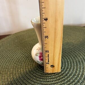 Vtg China Decorative Ceramic Floral Pattern Mini Gold Rimmed Bud Vase 3.75 inch.