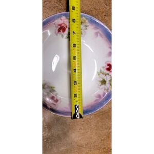 Keywords: antique bowl, porcelain, floral pattern, blue accent, vintage decor, German pottery, serving dish, table setting, collectible, shabby chic, Victorian, dainty, heirloom