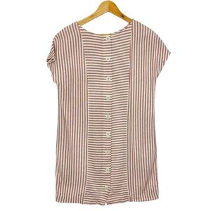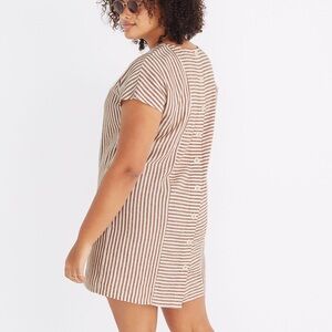 Madewell Linen Striped Play Button Back Short Sleeve Mini Tee Dress Warm Nutmeg
