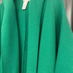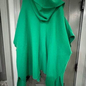 Chic and cozy hooded cape. Features open front and side pockets. Perfect for layering. Oversized and Relaxed.