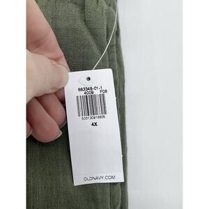 The Old Navy High-Waisted Crinkle Gauze Super Wide-Leg Pants in size 4X are a stylish and versatile addition to any wardrobe. Made of comfortable cotton knit fabric in an olive green color, these pants feature a flattering high-rise waist and a trendy wide-leg silhouette. The pull-on closure and elastic waist make them easy to wear and perfect for all-day comfort. With side pockets and a 30-inch inseam, these pants are suitable for casual, workwear, and business occasions year-round. The solid pattern and flat front design add a classic touch to these fashionable pants from Old Navy.