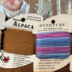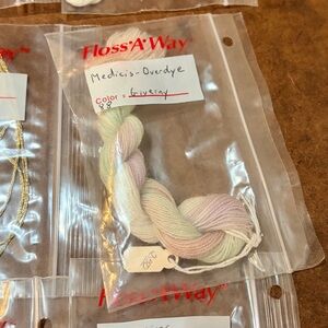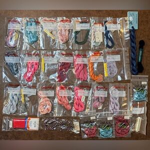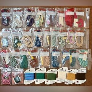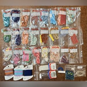 A vibrant collection of embroidery floss and yarn in various colors. Perfect for crafting and embroidery projects.