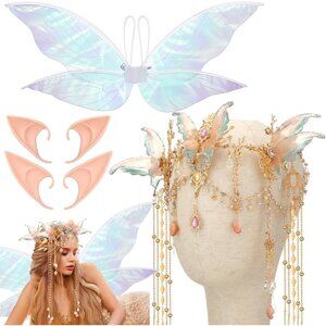 Fairy Elf Accessories Set Costume Wings Crown Ears — Dreamy fairy vibes for any occasion.