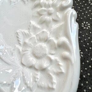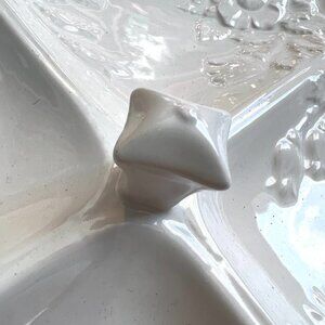Vintage Ceramic Platter Embossed Cream Vine Handle Flower Divided Serving Dish
