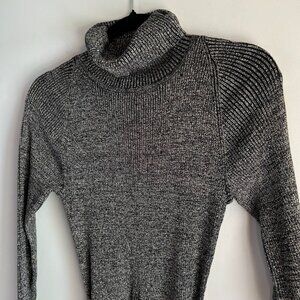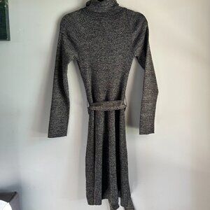 Metallic sweater dress with turtleneck and long sleeves