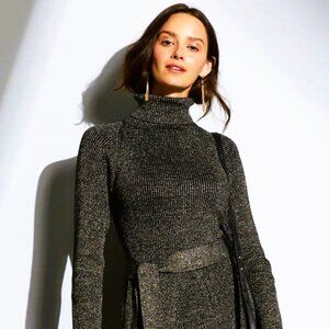 Alex Marie Nicole | Tie Front Sweater Dress Black/Gold | Size Large Women's