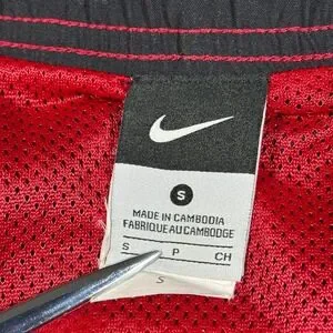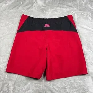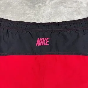Vintage Nike Swim Shorts Men Small Red Black Silver Tag Board Trunks Embroidered