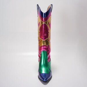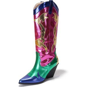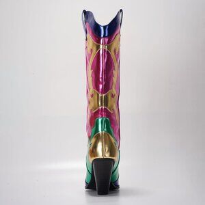 Women's Multicolor Metallic Mid Calf Western Pointed Toe Comfortable Heel Boots