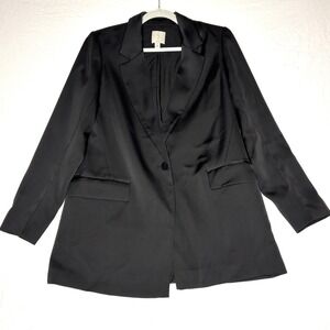 Keywords: Joie blazer, black satin jacket, womens blazer, single button blazer, lapel collar jacket, professional attire, evening wear, sophisticated style, modern elegance, versatile outerwear, classic design, smart casual