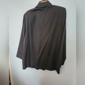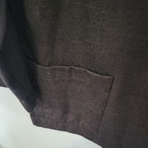 Stylish black knit blazer with a classic design. Features a single button closure and two front pockets.
