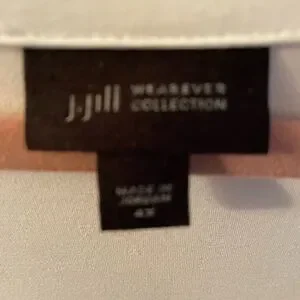 Chic cream tunic with V-neck and cute button accents in front. Three quarter length sleeves. Heavier fabric. J. Jill size 4X. Measurements in pics.