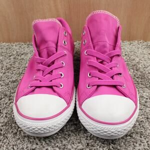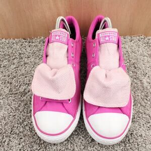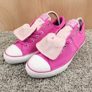 Converse pink sneakers junior 6. Classic low top canvas design with lace-up closure. Great for school, everyday wear, and casual outfits.