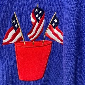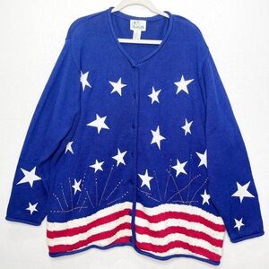 The Quacker Factory Embroidered Patriotic Blue Stars Flag Cardigan Sweater 2X