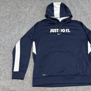 Nike Hoodie Mens Large Navy NikeFIT Therma Just Do It Sweatshirt Casual Athletic