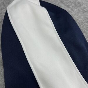Color: Navy blue with white contrast panels on sleeves and hood.