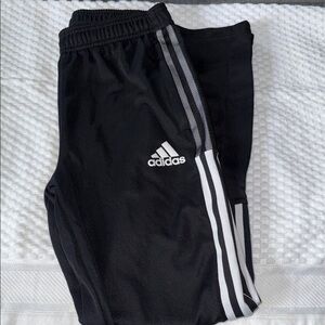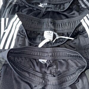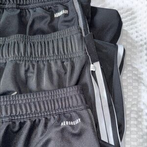 Three (3) pairs of stylish adidas black joggers. Ideal for active kids. Features iconic Adidas logo. Black/gray, black/white. Size L (13-14Y/164.