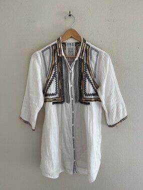 Features Large and Small Brass Studding, Ruffled Fabric in Red, White and Black on Collar, Pockets and Shoulders; Zip Front with Two Front Pockets; Gathered Waist Tie; Zippered Cuffs and Gold Stitching; Back Hem Pleats.