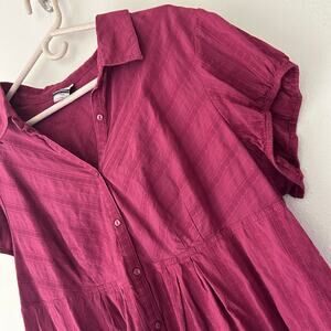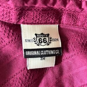Route 66 women's short sleeve shirt. Perfect for casual wear, layering, or adding a vintage-inspired touch to your wardrobe. Empire waist peplum waist babydoll Burgundy, Maroon purple