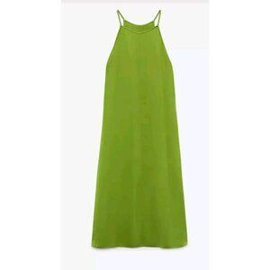 ZARA Dress WOMAN NWT EFFECT HALTER Spli Green 4437 080 Small 18" Ptp Viscose
