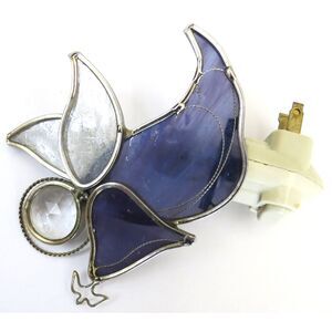 Stained Glass Angel Nightlight with Dove Purple/Clear EUC