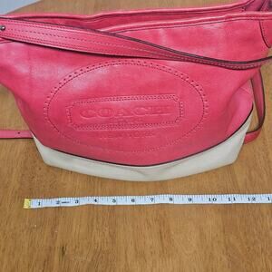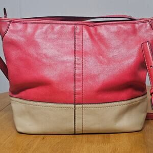 Coach Leather Coral-Red Sand Tan Hampton Weekender Hobo Bag Travel Vacation