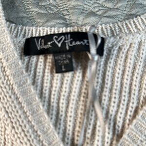 This Velvet Heart tank top showcases a chic ribbed texture and a flattering wrap design with a tie front. Its sleeveless style and neutral cream color make it a versatile addition to any wardrobe, perfect for layering or wearing on its own.