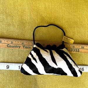 Darling, super soft, and plushy purse shaped ornament hand made with black and white zebra print velour fabric. Very light vanilla scent.