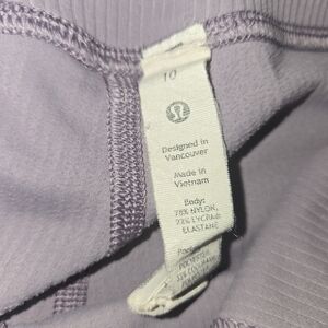 Lululemon high-rise leggings in a stylish purple shade. Perfect for yoga or casual wear.