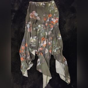 Delia's By Dolls Kill Green Floral Asymetrical Hem Maxi Skirt