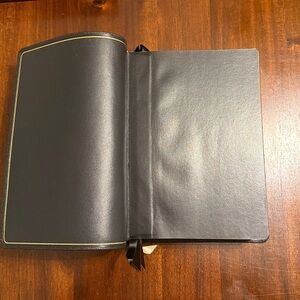 Rare study Bible. Minor damage to the box and slight crinkle before the copyright page. Other wise, this Bible has been stored, looked at a few times and that is all. No longer use this translation. This rendition printed in Italy with black goatskin is out of print.