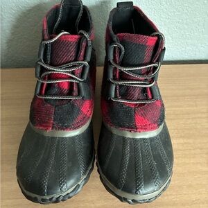 Sorel women’s size 5.5 Red and Black Plaid Boots NWOT