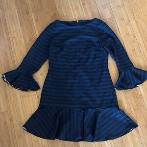 Sail to Sable Blue and Black Striped Long Sleeve Dress