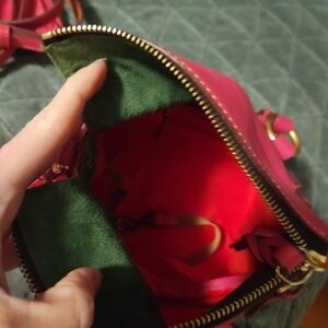 Chic and stylish, this Dooney & Bourke pink leather satchel is perfect for any occasion. Crafted with high-quality materials, it features a spacious interior and elegant design. Add a pop of color to your outfit with this stunning bag.