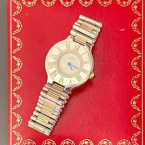 Comes with box ( may be a gift box or Cartier ) and can be bought as a gift. Box may not be as new as the one in the picture.