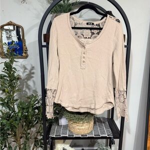 Aerie Cream Textured botton down Blouse size xxl