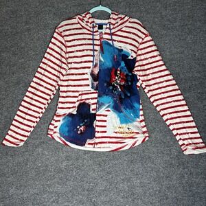 La Cera Womens Tunic Top Butterflies Size Medium Colorful Nature Sheer