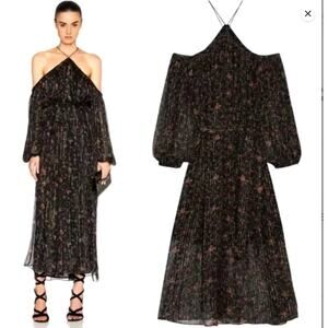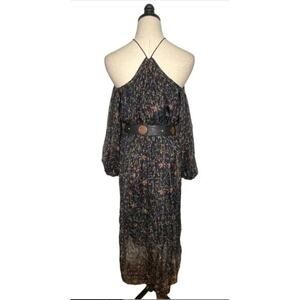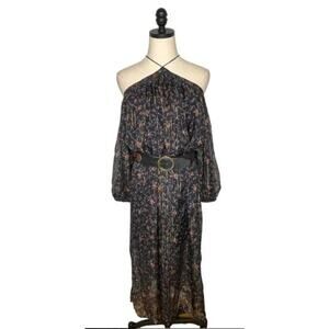 Zimmermann 3 Havoc Suspend SILK Maxi Dress Metallic Threads Off Shoulder Navy L