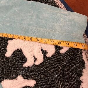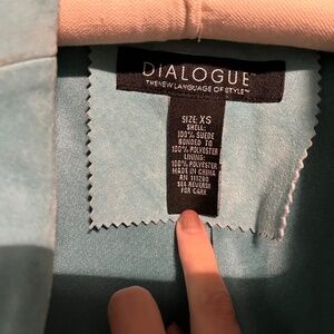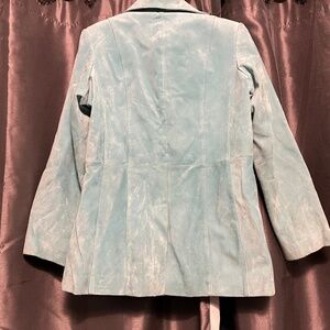 This fun sea foam colored jacket is 100% suede. XS with sleeve length being about 16 in.