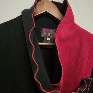 This vintage Red Rover Clothing Co coat is the perfect addition to any wardrobe. The black and red color combination adds a pop of color to any outfit, while the fleece outer shell material and polyester lining provide warmth and comfort. The relaxed fit and cowl neck feature make this coat both stylish and practical.