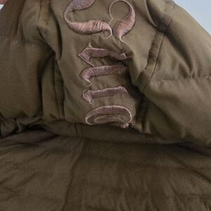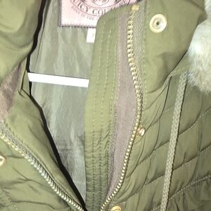 Juicy Couture Olive Puffer Jacket with Faux Fur Trim Y2k Vintage