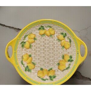 VTG. MCM Temptations Lemon Fruit 15-1/4" Serving Platter W/ Handles & Lemons