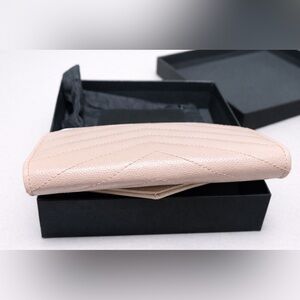 💯 Authentic Saint Laurent Monogram Envelope Wallet – Blush Pink Grain de Poudre