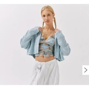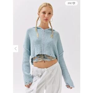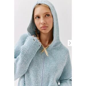 Urban Outfitters Jacket Womens Small Blue Rhode Distressed Hooded Cardigan Crop