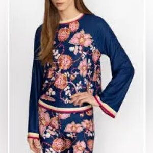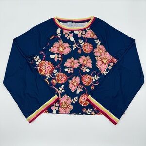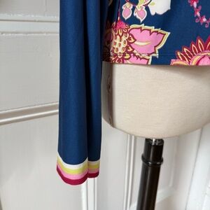 NWT Johnny Was Active Women’s Blue Pink Graphic Long Kimono Sleeve Shirt Large