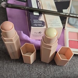 @nicolecarmoma 2 face sticks eyeshadow pallete brush and pouch