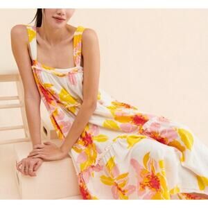 Free People Moonshine Midi Flower Linen Tiered Dress Anthropologie Boho Hippie
