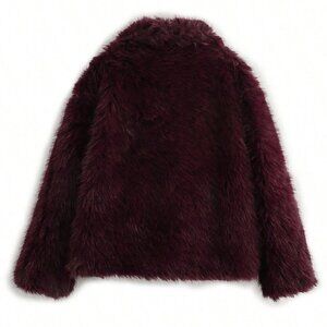Burgundy Women's Chic Wide Lapel Snap Closure Faux fur jacket coat Outerwear