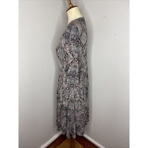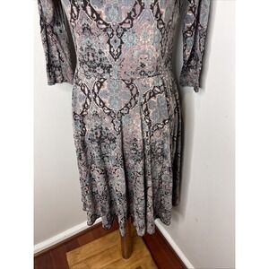 Peruvian Connection 3/4 Sleeve V-Neck Grey Paisley Cotton Dress Medium M